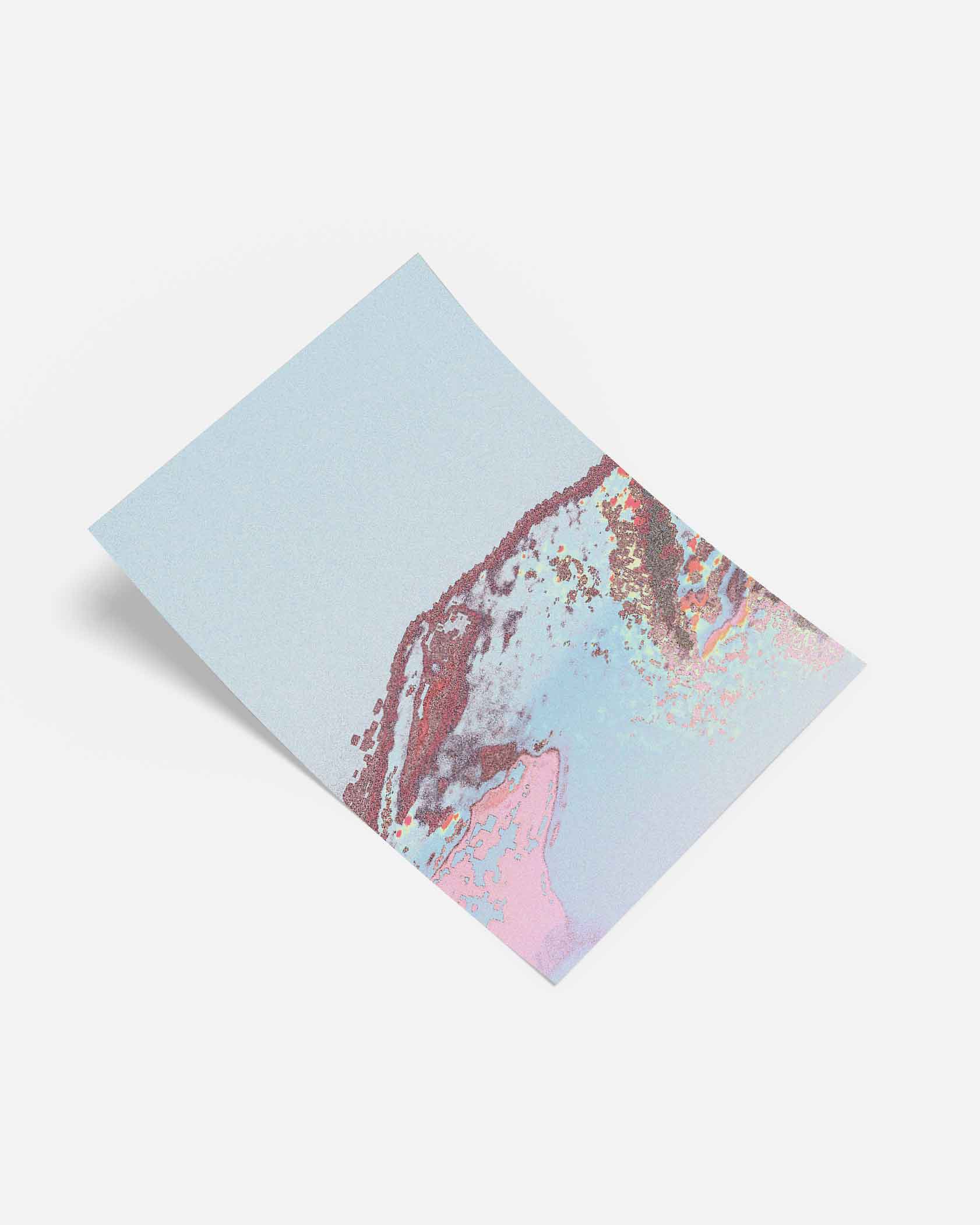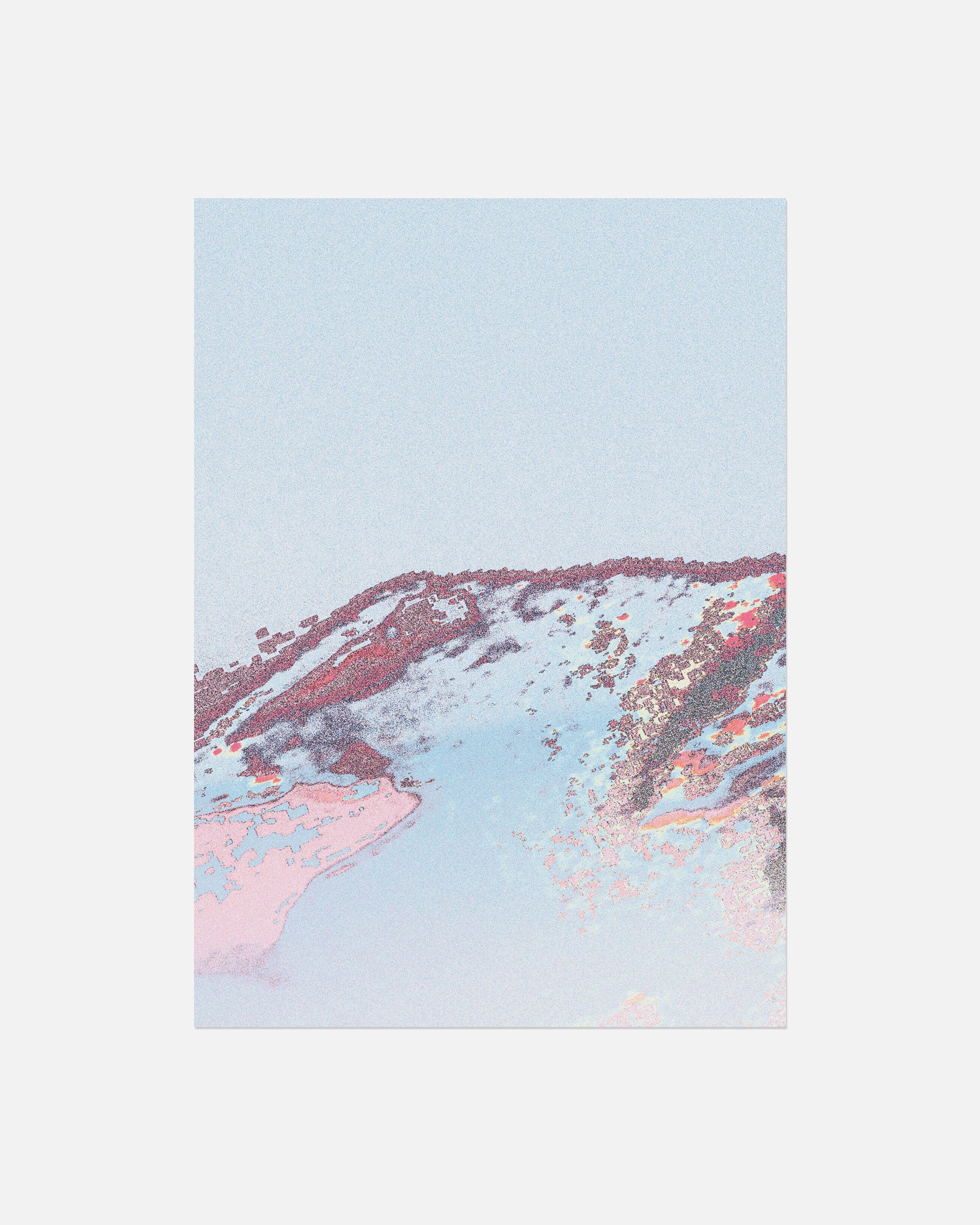 Hira No.2 is a digitally created grainy art print featuring a minimalistic color palette of pastel blue and pink.